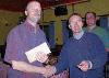 Andy Dring receives his prize from John Birmingham for winning the Island Shipping Prize.