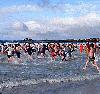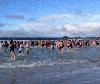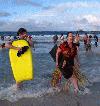 The photos show: Swimmers making a quick exit towards the bonfire, A Child enjoying the view from the palates, This boy went in prior to the swim, Angel Fancy, An odd pair of skiis, Ktv Broadcasting live, not everyone was in a \hurry to get out of the water, Collecting for charities, the splendid bonfire and Surfers.