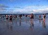 The photos show: Swimmers making a quick exit towards the bonfire, A Child enjoying the view from the palates, This boy went in prior to the swim, Angel Fancy, An odd pair of skiis, Ktv Broadcasting live, not everyone was in a \hurry to get out of the water, Collecting for charities, the splendid bonfire and Surfers.
