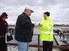Cruise Ship passengers experiencing the Falklands for the second time no doubt have noticed that new security measures are in place at the Public Jetty. Tourism officials, including Director of Tourism, Mrs. Connie Stevens, Marine Officer, Capt. Jon Clark and newly appointed security officers that checked passenger identification and some bags and packages as tourists began to arrive and as they left for the MV Amsterdam, which arrived in Port William at 0700 on Tuesday morning.